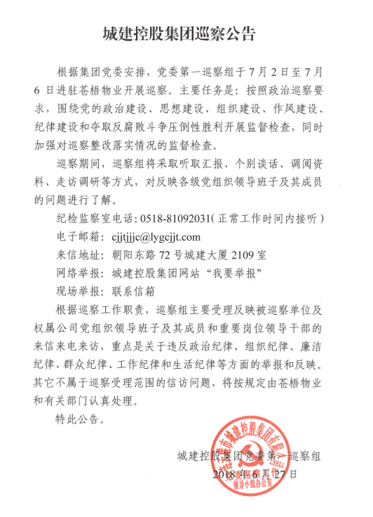集團黨委第一巡察組對蒼梧物業(yè)開展巡察公告